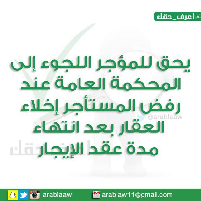 اعرف حقك En Twitter اعرف حقك يحق للمؤجر اللجوء إلى المحكمة العامة عند رفض المستأجر إخلاء العقار وذلك بعد انتهاء مدة عقد الإيجار Https T Co 9lbvt9by4c