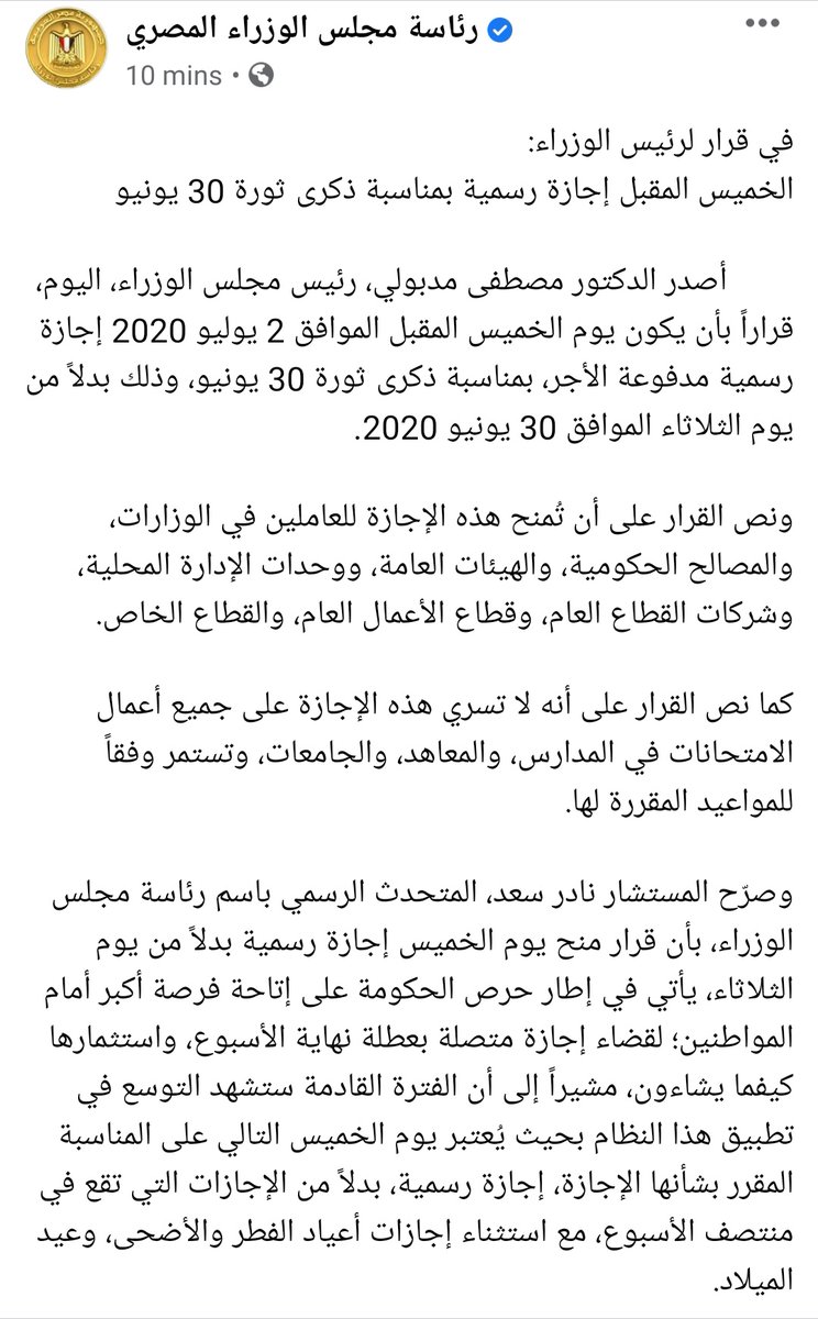 Moataz On Twitter مجلس الوزراء طلع قرار أن أي إجازة رسمية في نص الاسبوع تتاخد يوم الخميس من الاسبوع ده علشان تبقى بريدچ مع الويك اند و ده استمرارا لاستراتيجية الدولة في
